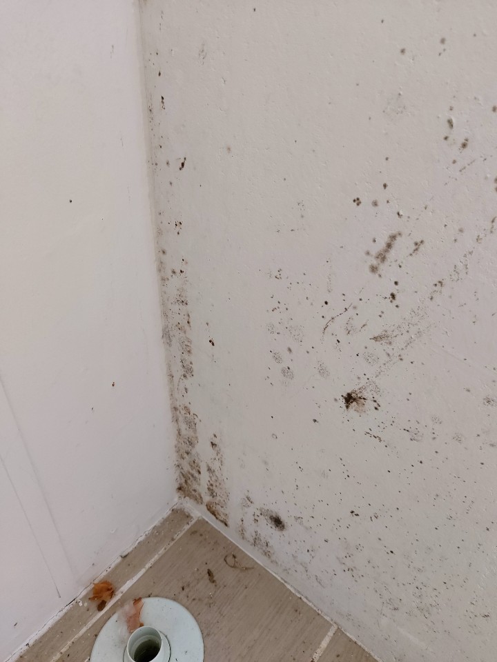 락스이용해서 곰팡이가 핀 벽에 스프레이로 충분히 분사후 휴지를 한 더 붙이고 스프레이 분사,