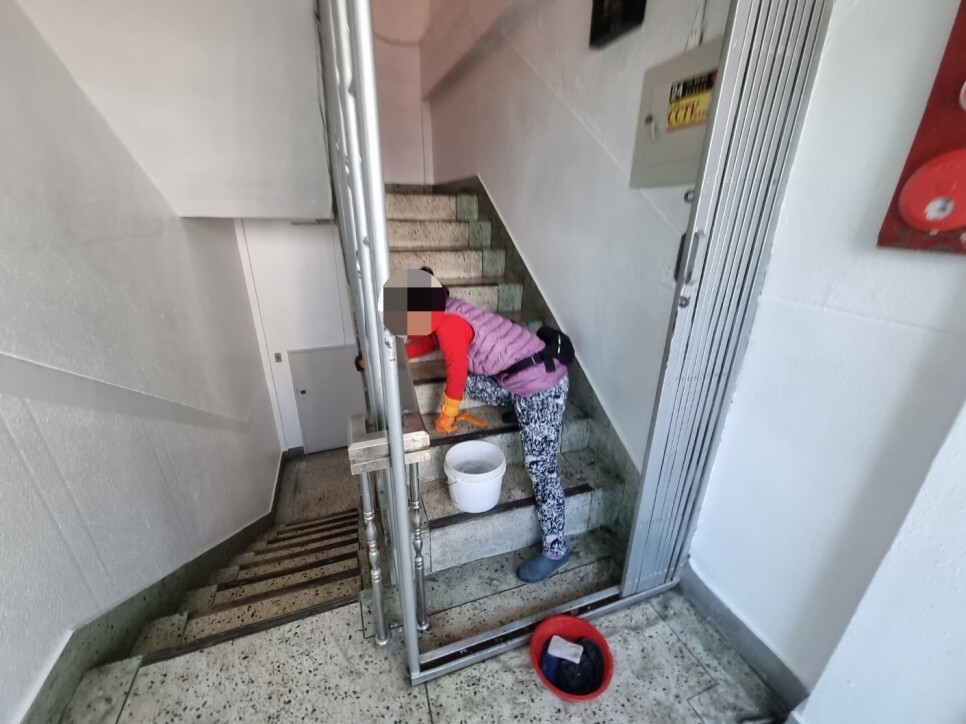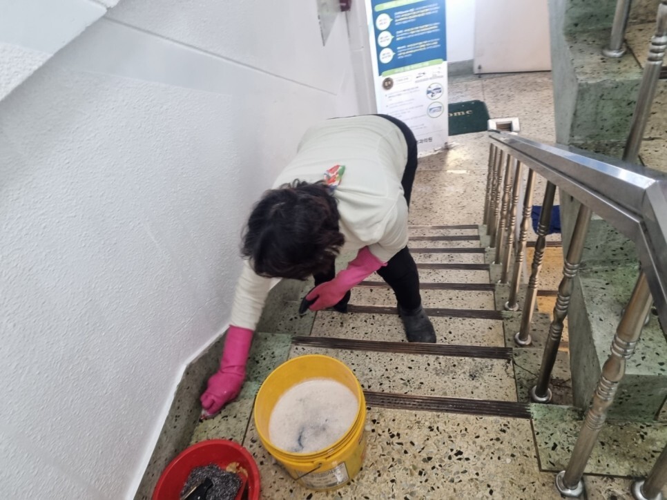 오염물제거청소 깨끗한 계단에