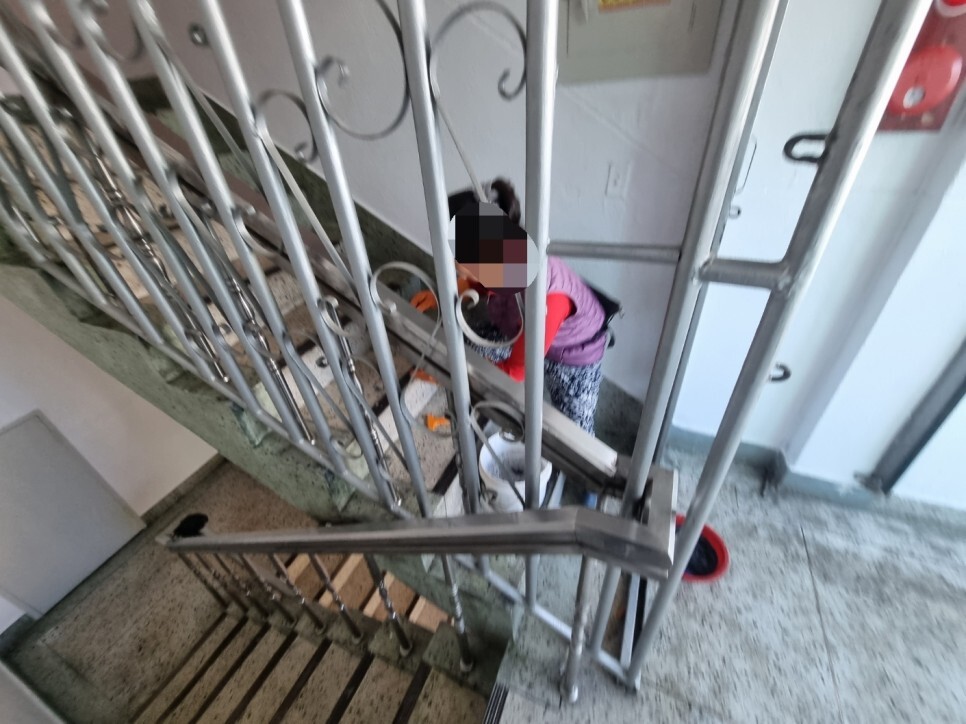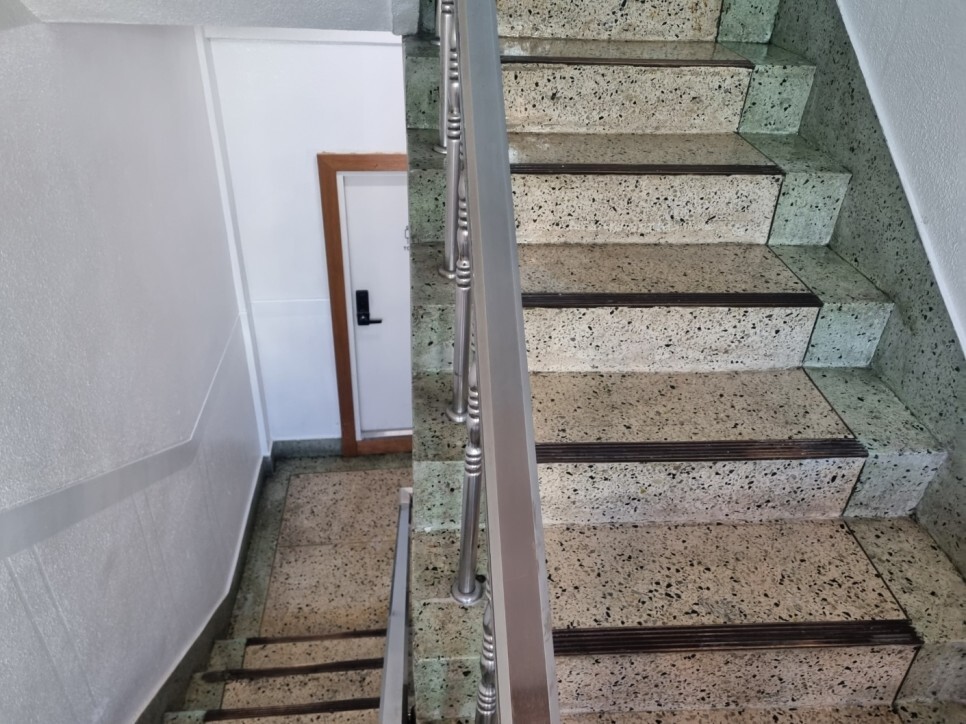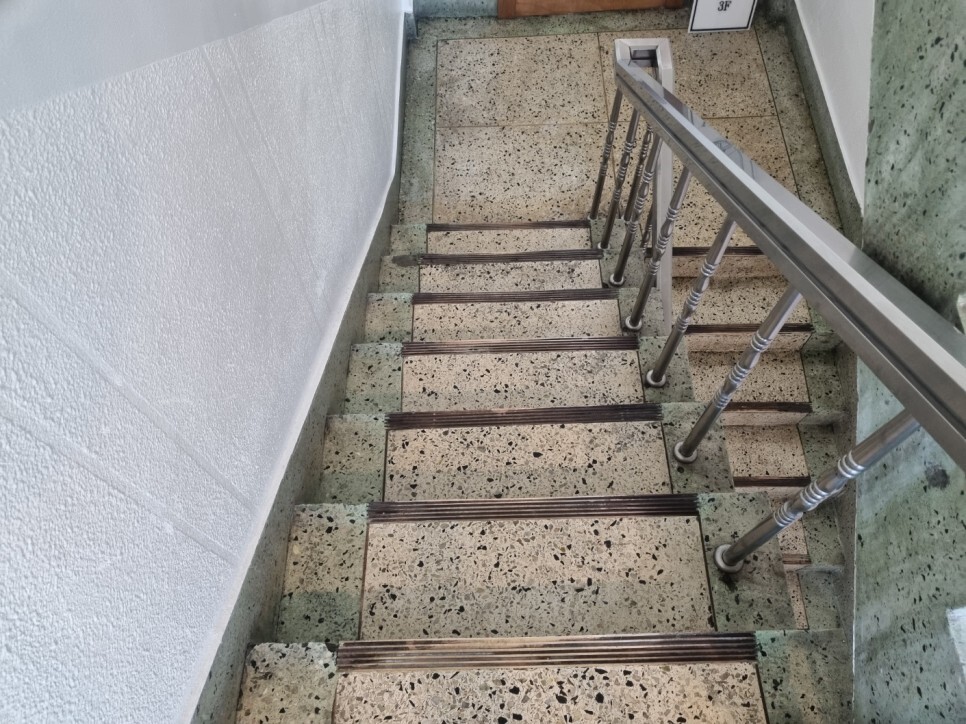 계단 난간이 청소가 제대로 되어있지