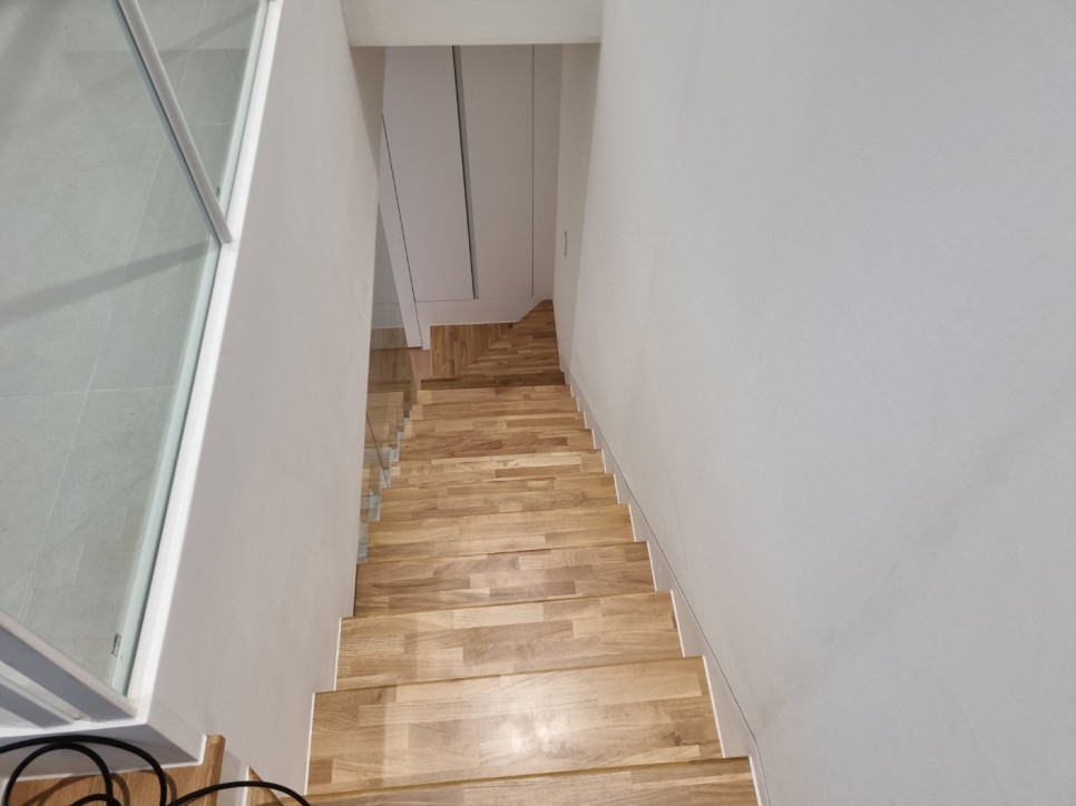 복층의 계단은 두꺼운 통유리로 넓게 돼있네요.