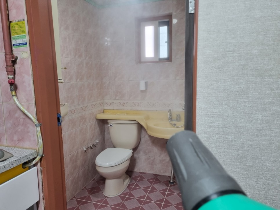 화장실벽면,변기,수전등 샴푸질을 해서