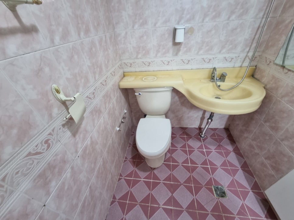 화장실벽면,변기,수전등 샴푸질을 해서