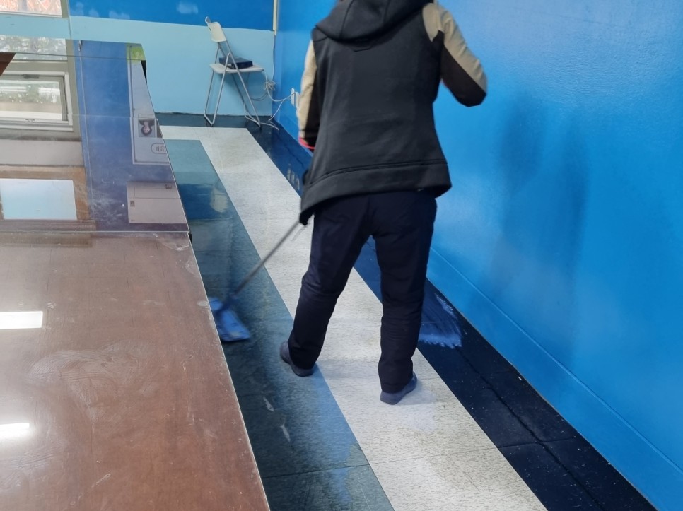 넓은 바닥은 장비를 이용해 청소를 하지만