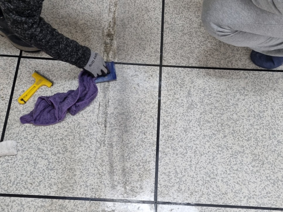 줄눈과 구것진곳에 곰팡이를 제거하고,
