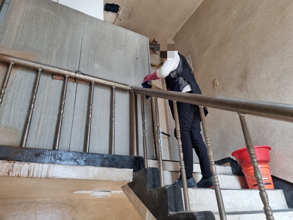 계단에 있는 모든 이물질과 먼지가 많아 대청소