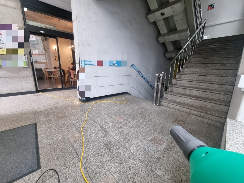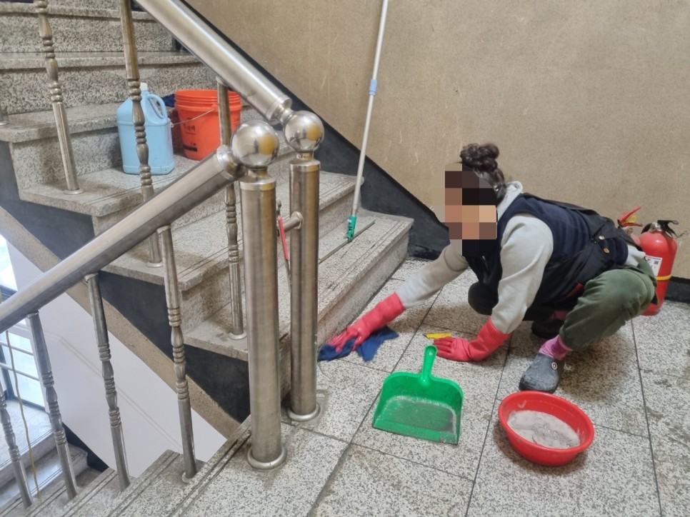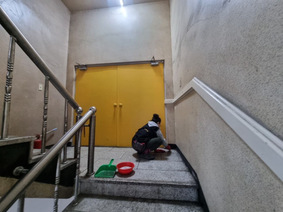 계단에 있는 모든 이물질과 먼지가 많아 대청소