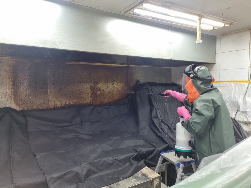꼼꼼하게 한 후 후드 청소를 진행해야 합니다.