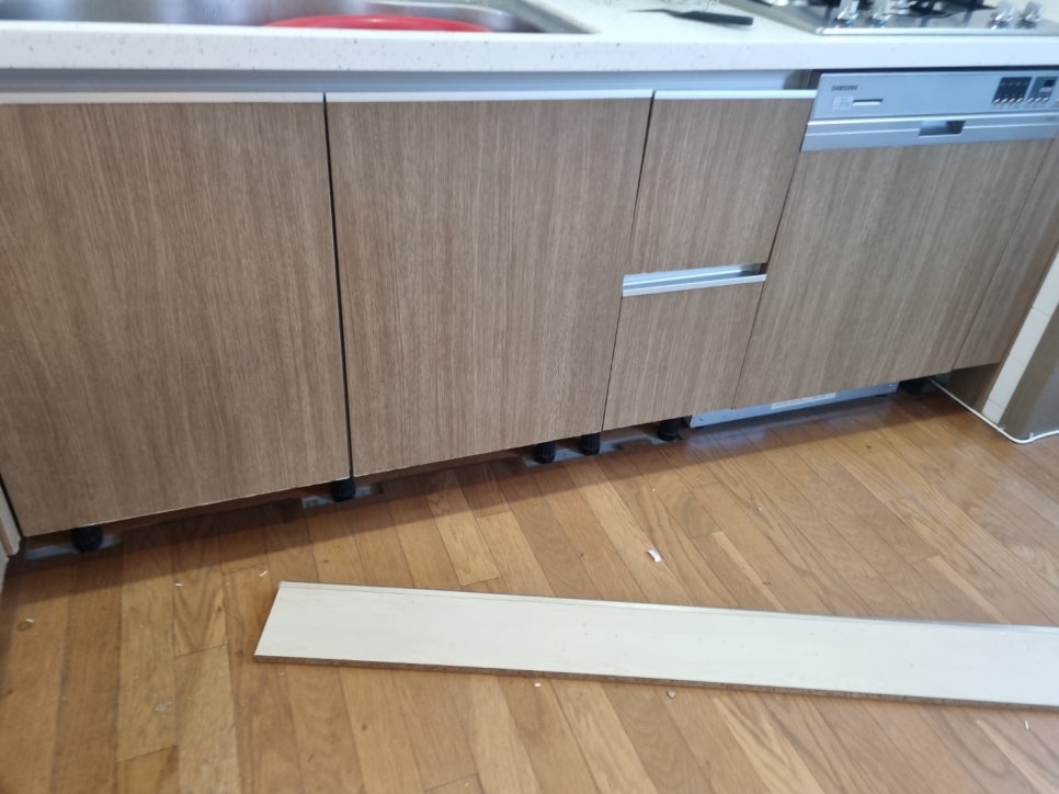 씽크대하부 걸레받이는 탈거해서 안쪽에 각종 쓰레기와