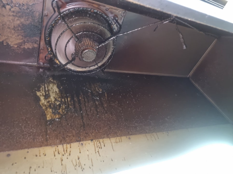 작업 전 후드내부를 보니 오래된 기름때가 검게