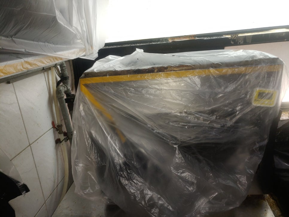 작업전에 주방후드 주변에 주방집기에