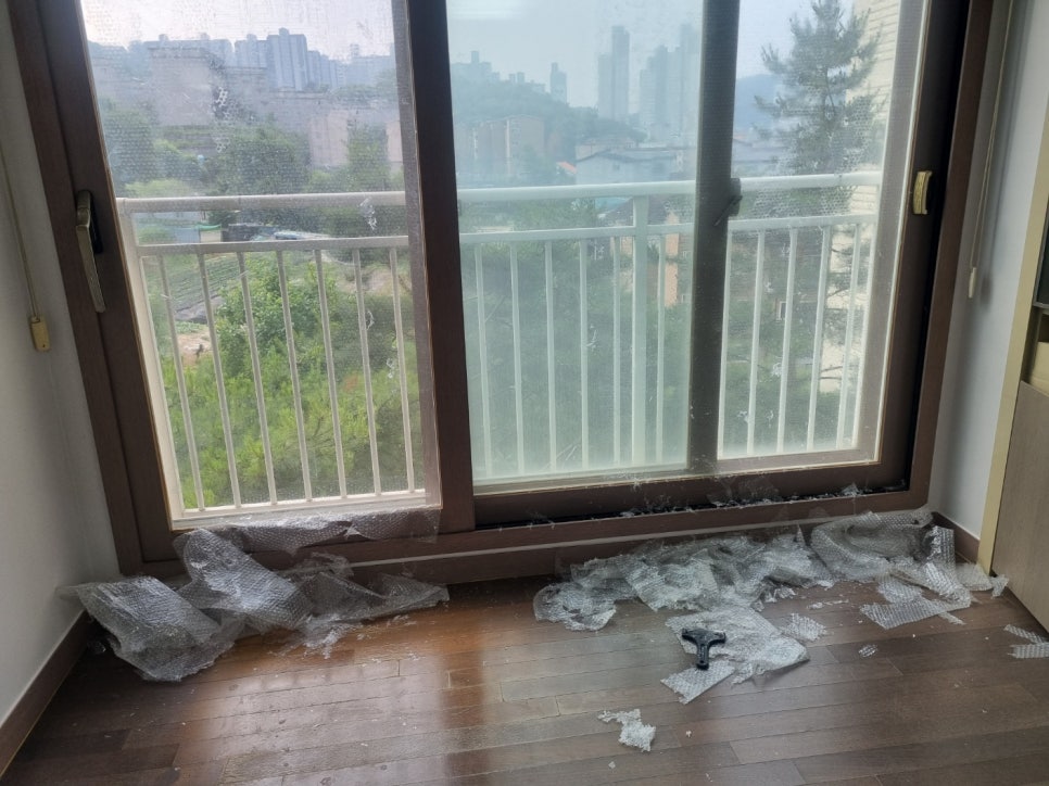 유리창마다 뽁뽁이제거..ㅜㅜ