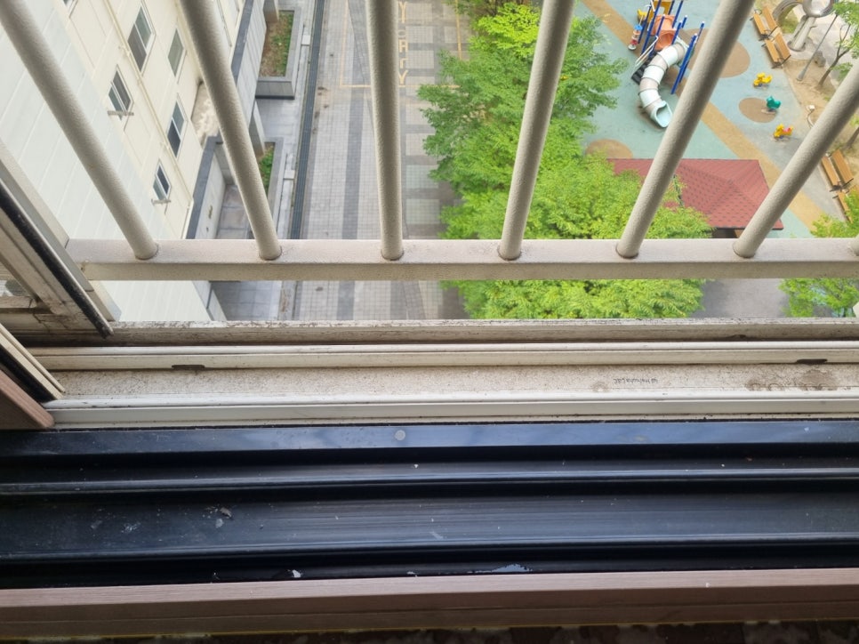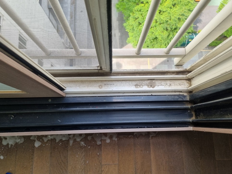 창틀에 묵은때와 찌든 때가