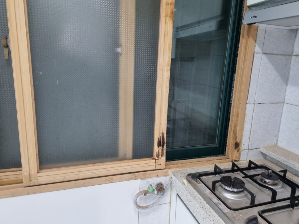 주방에 붙은 창문은 기름때로 덕지덕지..