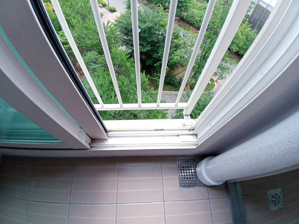 보일러실, 세탁실 겸용 베란다입니다. 다용도로 쓰이는 곳이기 때문에 먼지와 바닥 얼룩이 많이 있습니다.