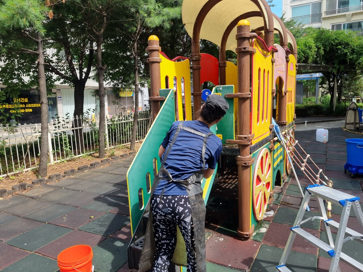 아파트단지내 어린이놀이터청소 어린이놀이기구청소 살균 소독청소 깨끗해졌어요