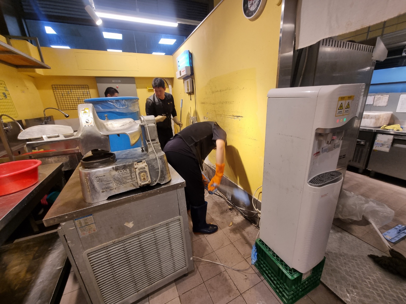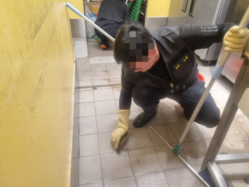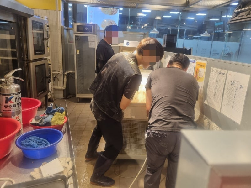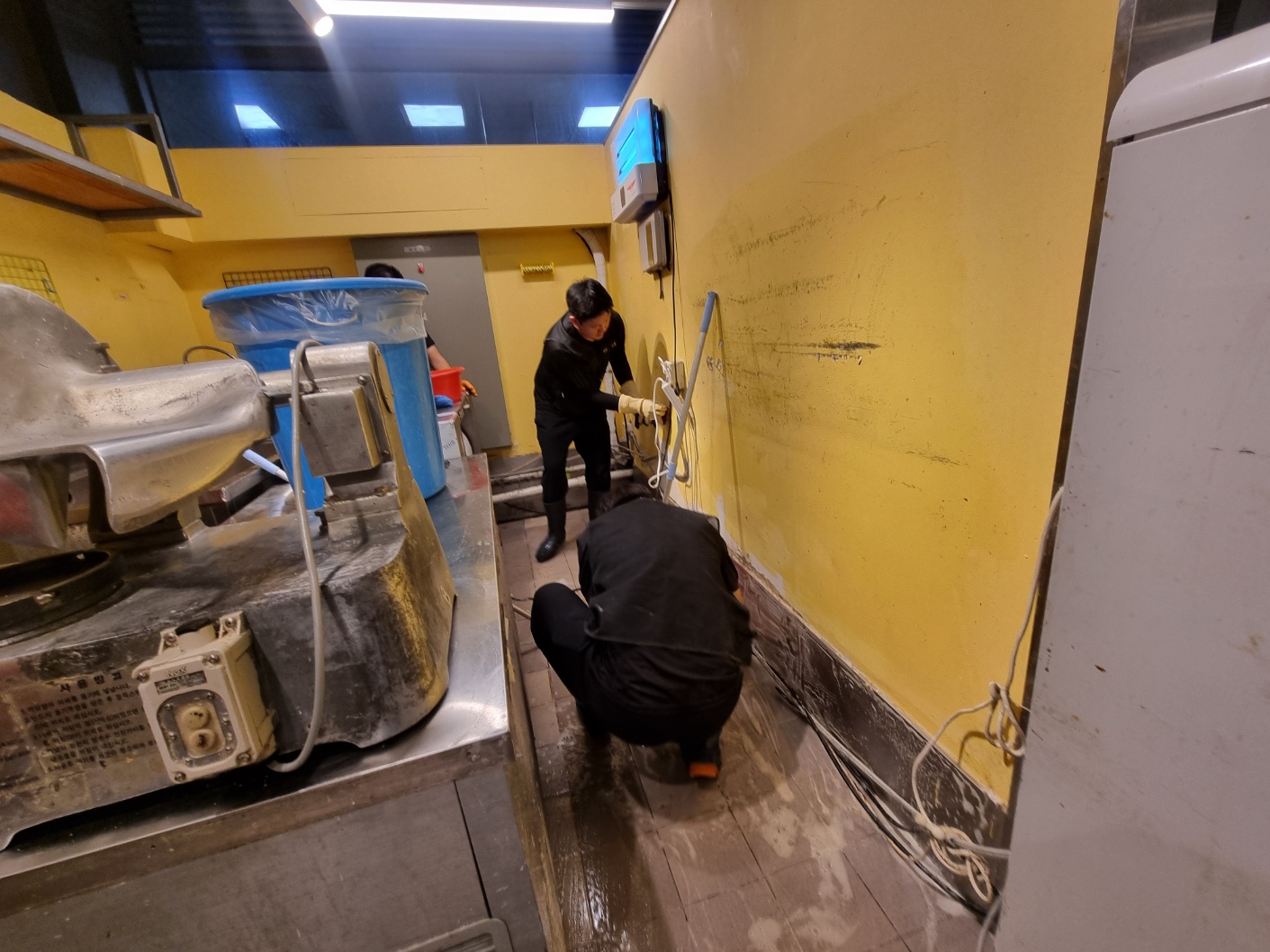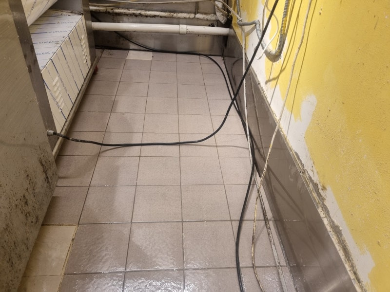 요식업소 제과점 주방청소 바닥오염때 청소 야간작업으로 청결하게 마무리