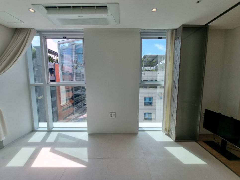 방과 거실에 접이식 유리창청소이비니다.