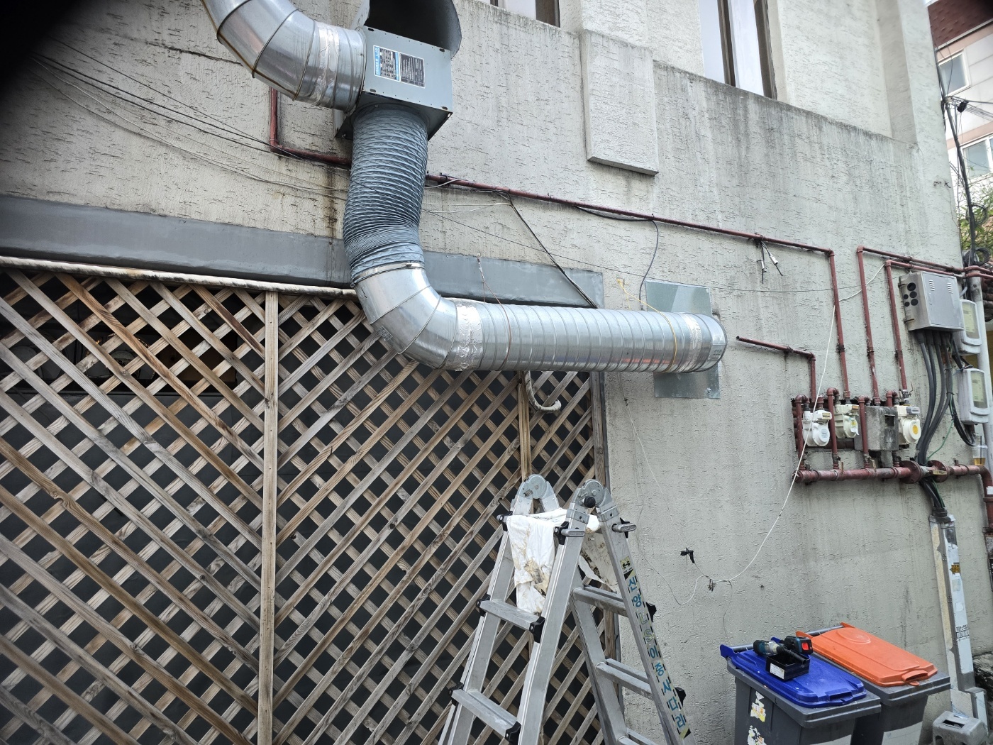 외부에 흡. 배기를 돕기위해 연결된 모터청소,