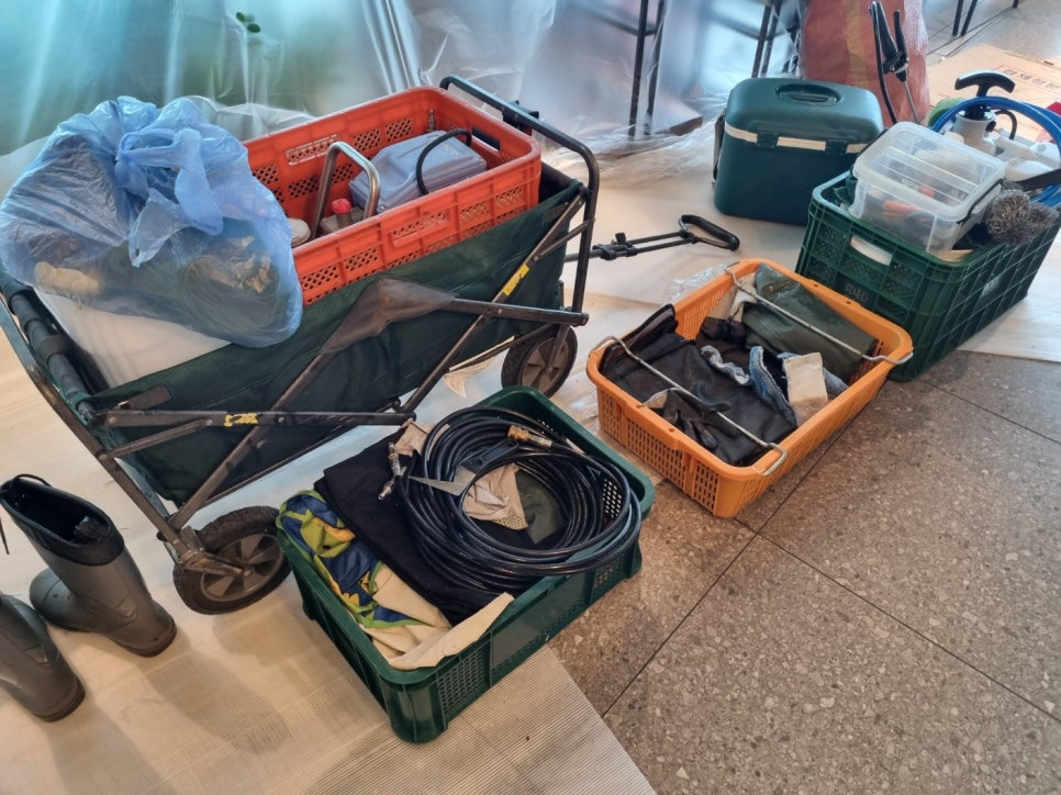 청소 전문장비와 전용약품을 준비하고