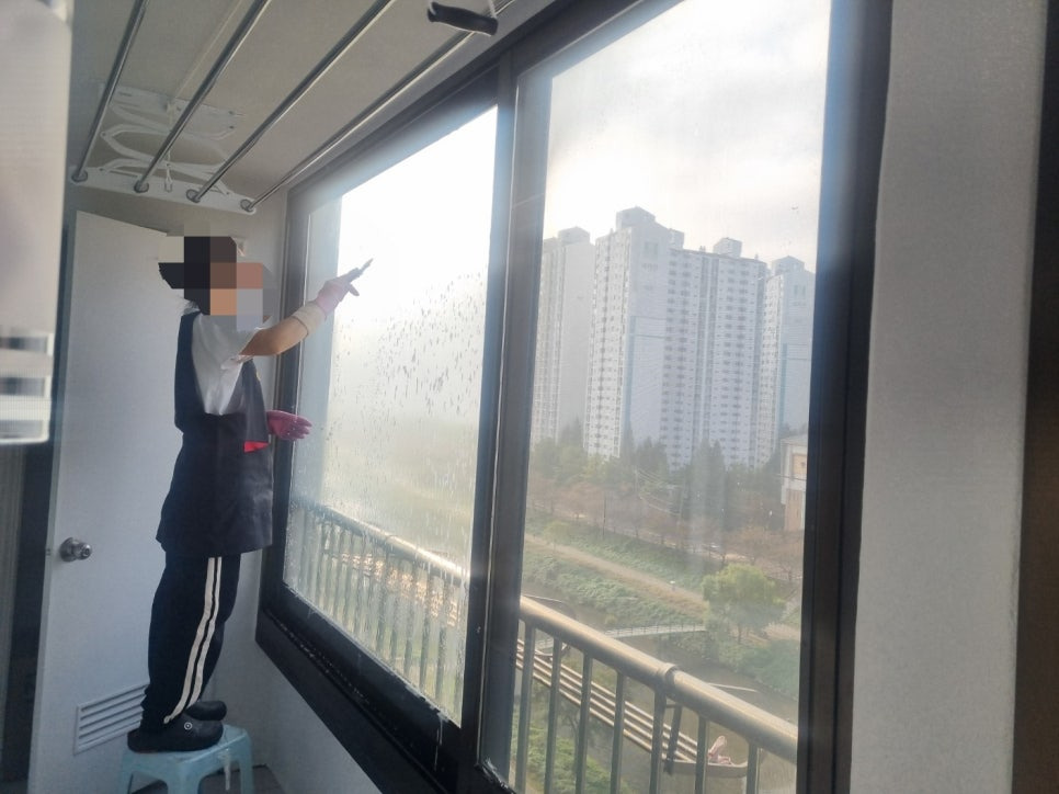 창틀. 문틀 청소가 진행됩니다.