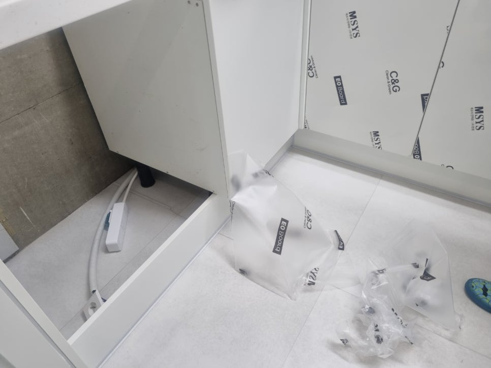 씽크대는 신규제작을을 비닐을 떼고