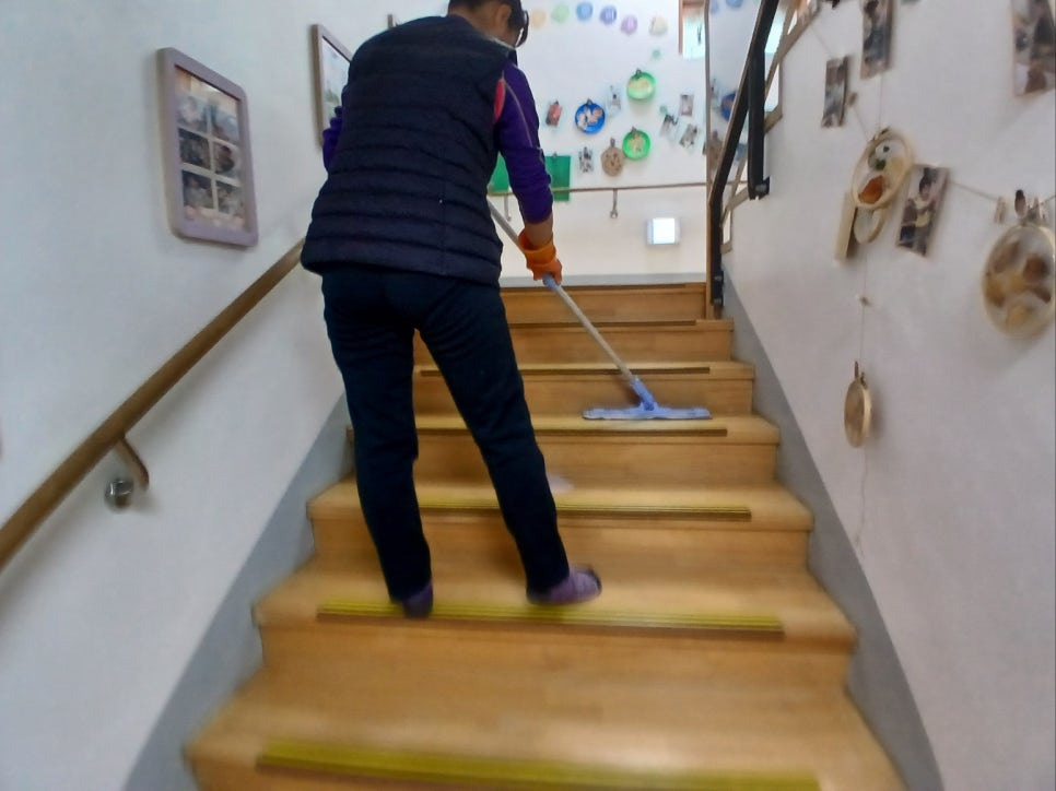 어린이집 계단청소 및 왁스코팅 작업입니다.