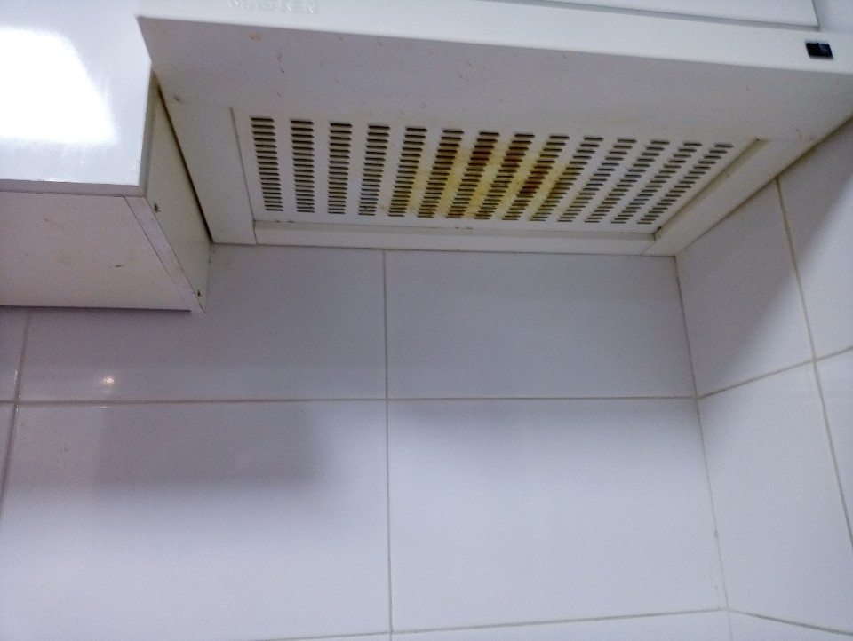 후드탈거후 기름이 떡진부분을 전용약품으로 수십번 번복해서 닦아내고