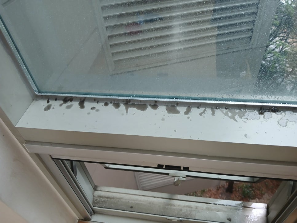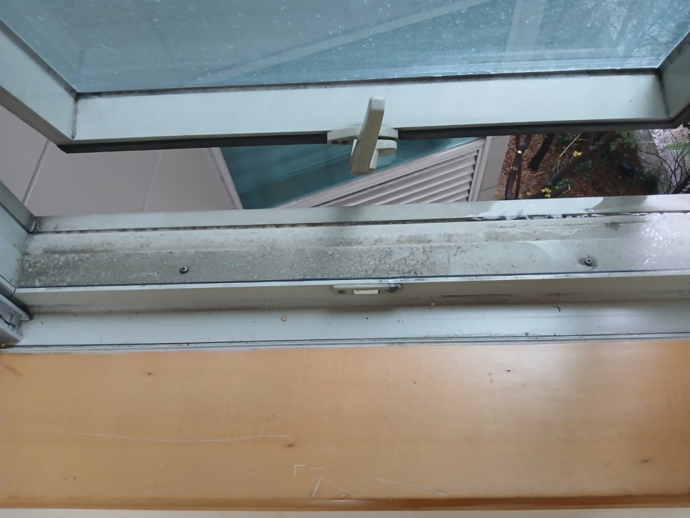 창틀에 쌓인 먼지. 찌든때. 묵은때를 제거하고