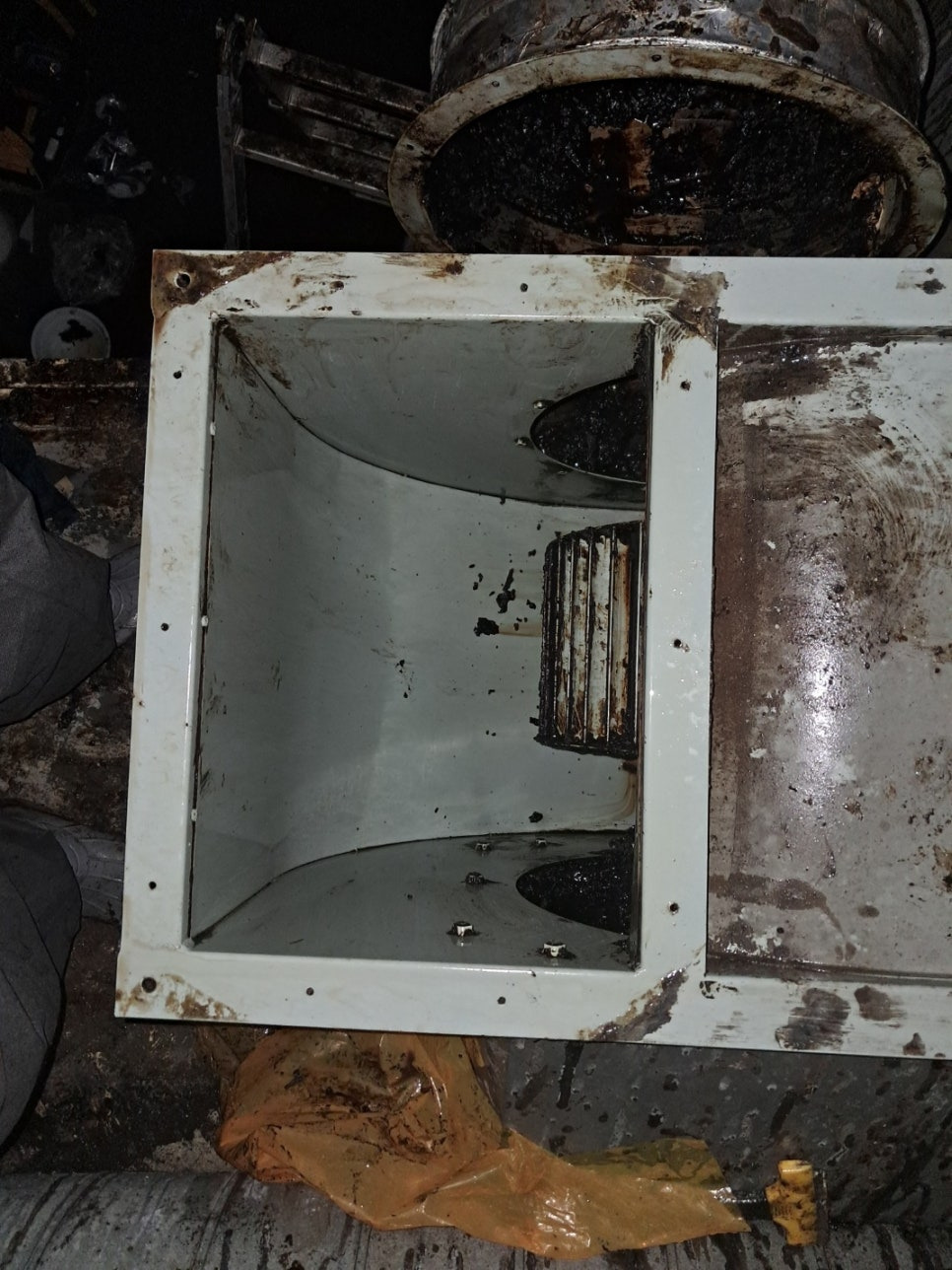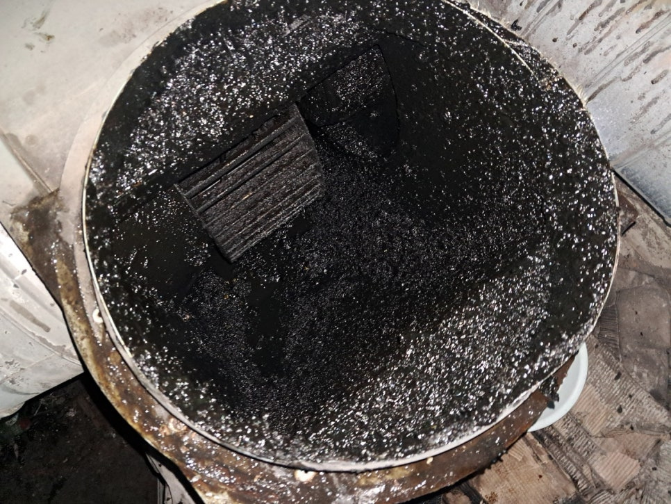 후드와 덕트 내부에 쌓인 기름때는