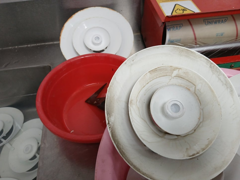 탈거된 주방후드 필터는 전용세제에 기름때를