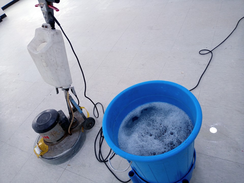 전용장비를 준비하고 바닥에 각종먼지와 쓰레기를 치우고 전용세제를 미리 준비합니다.