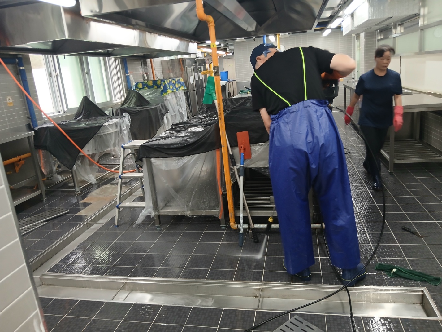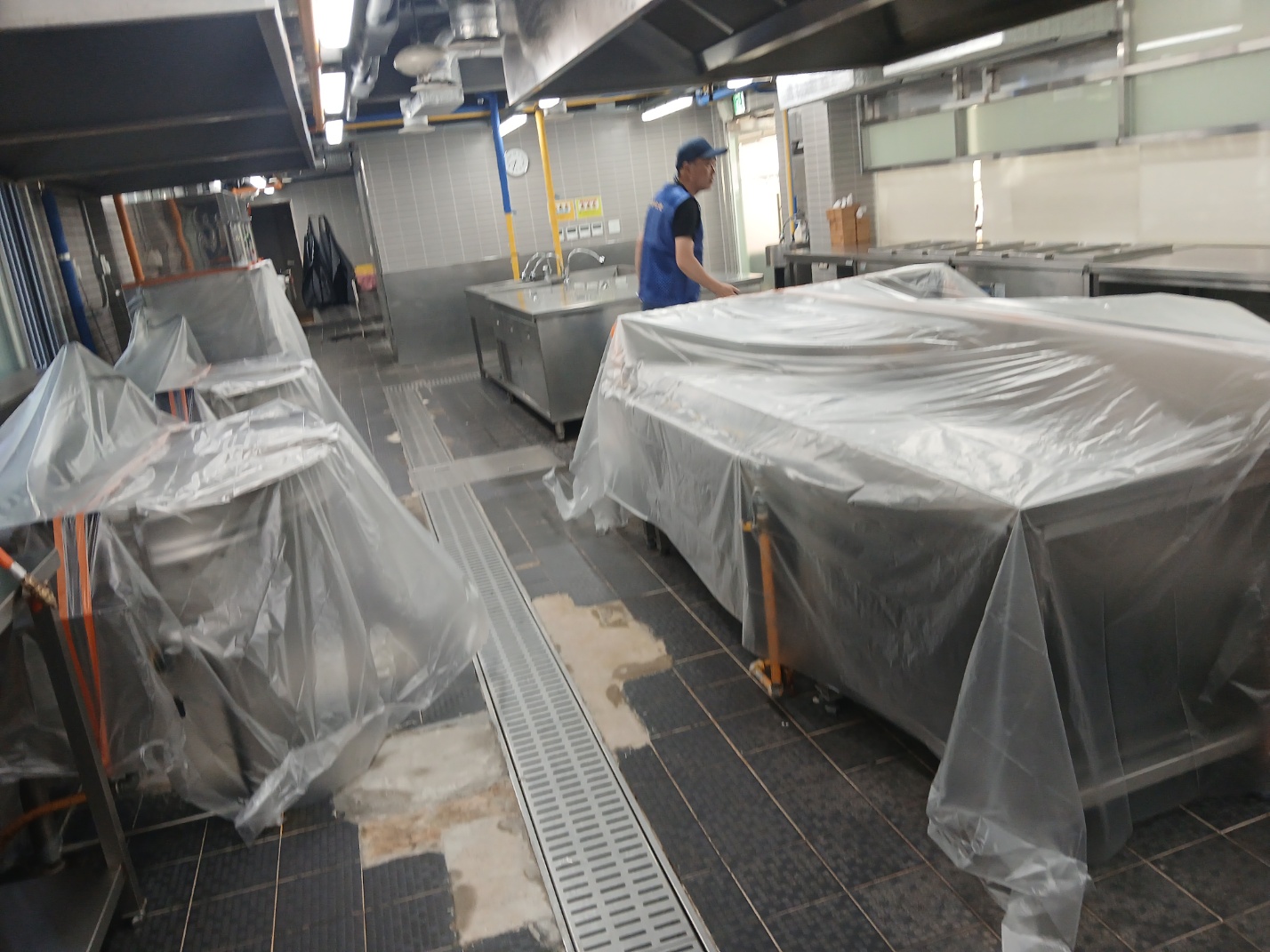 구내식당 주방후드 청소에 앞서