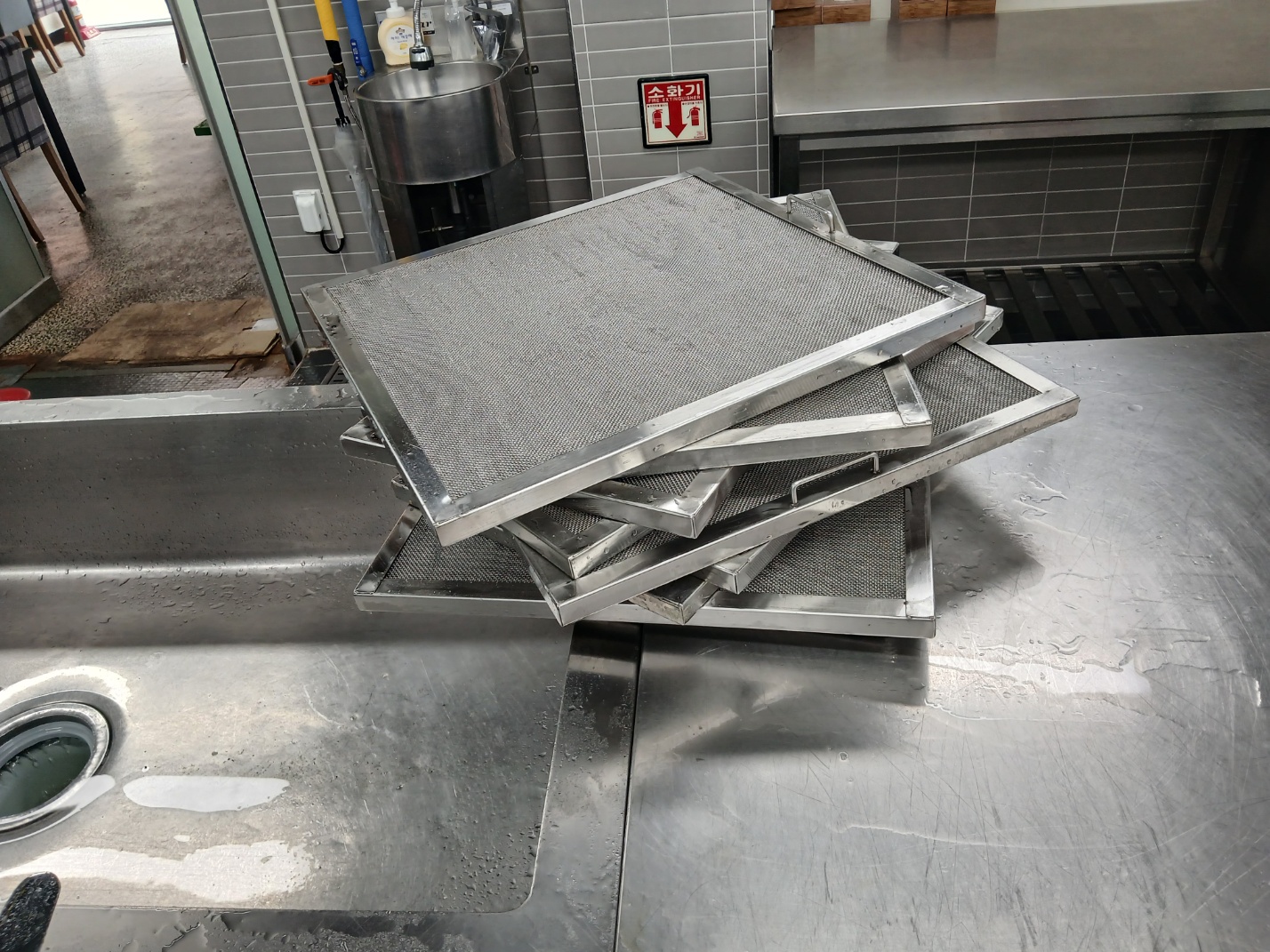 탈거된 주방후드 필터는