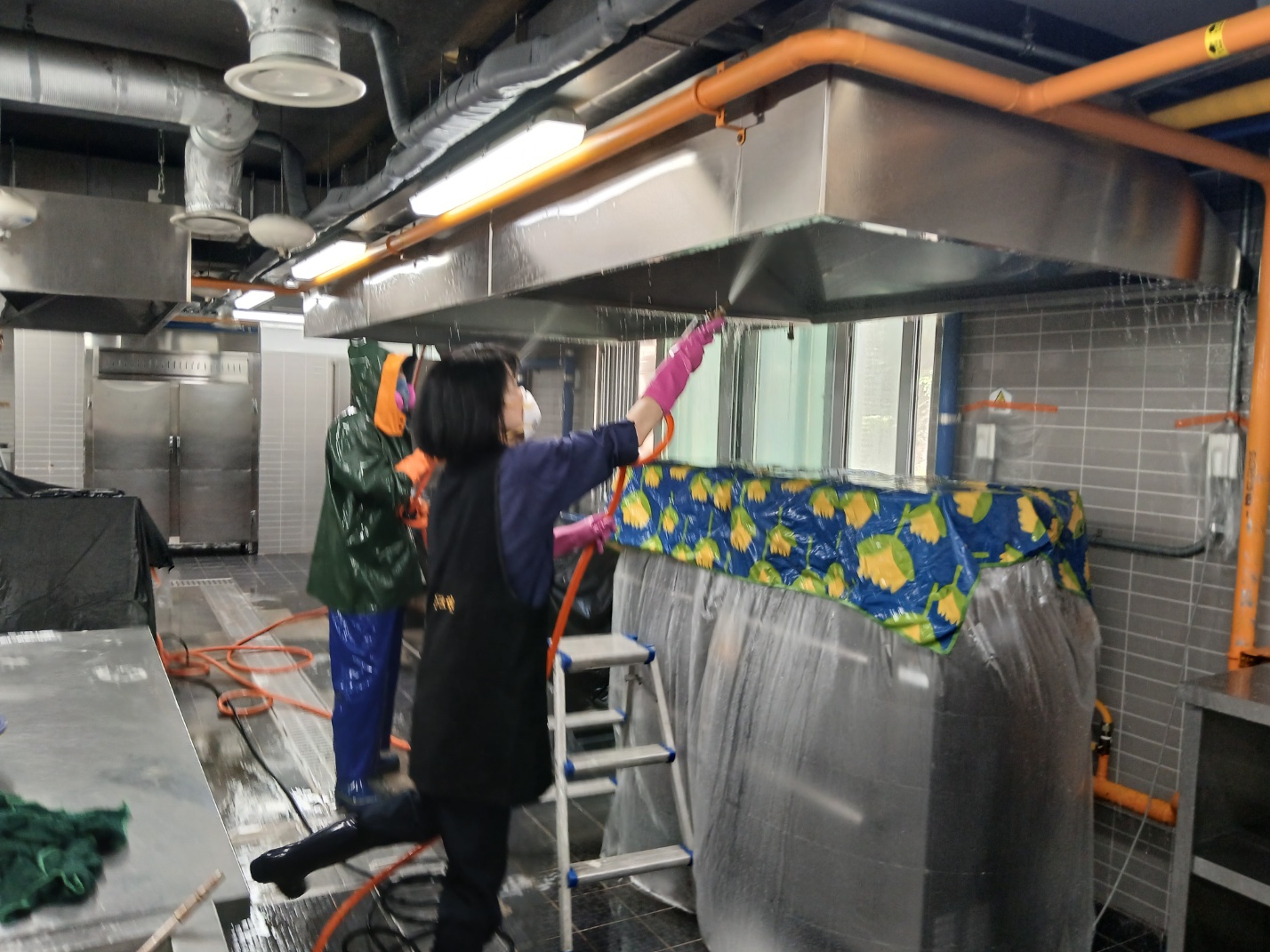 시스템후드청소. 주방. 배기닥트.