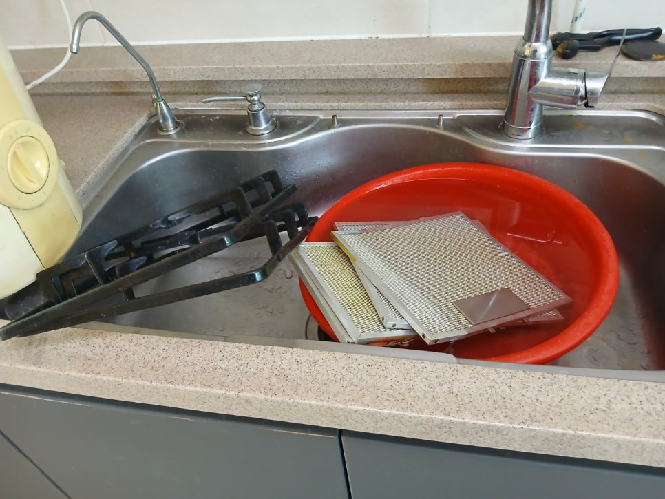 싱크대 주변에 기름과 먼지가 많이