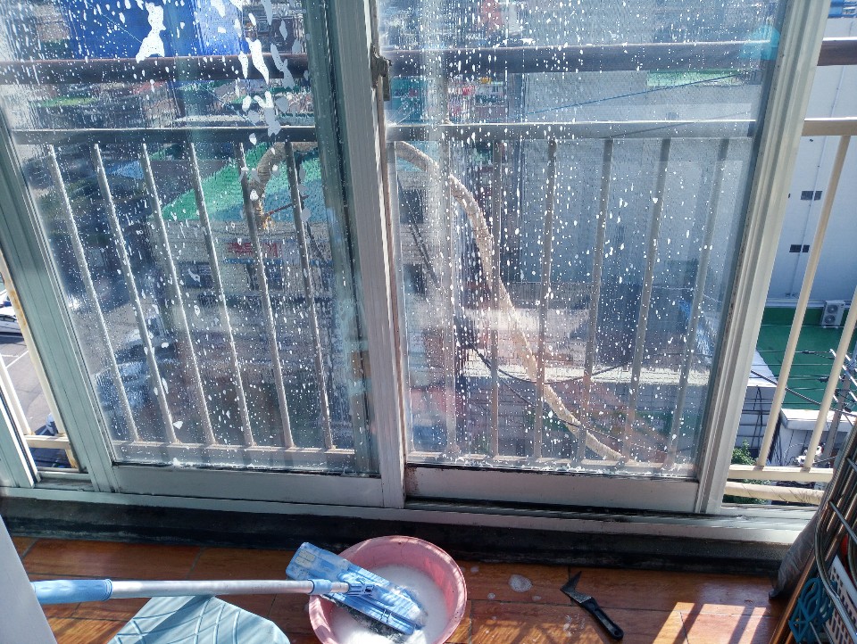 창틀샤시는 수작업으로 반복작업으로 오염제거 및 복원을 통해