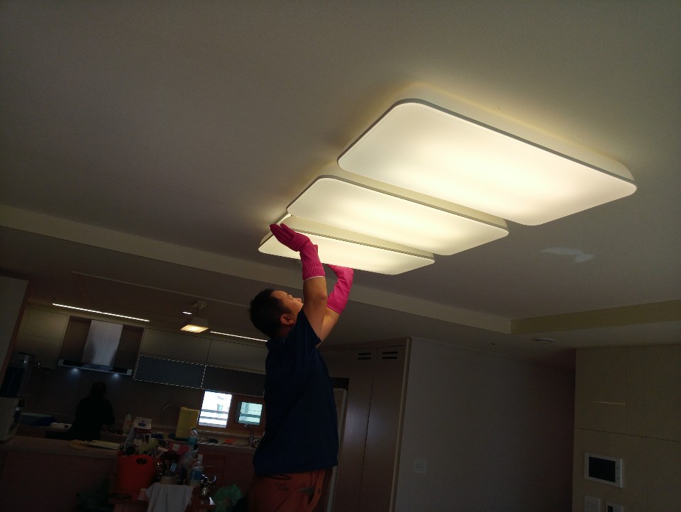 전등커버를 탈거 해 보면 많은 먼지 덩어리와 동시에