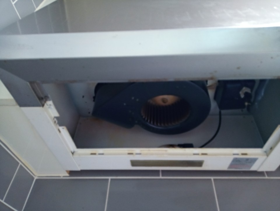 그리고 렌지후드 본판 위쪽으로도 먼지와 기름때로 인해 광택이 죽어있는 상태죠.