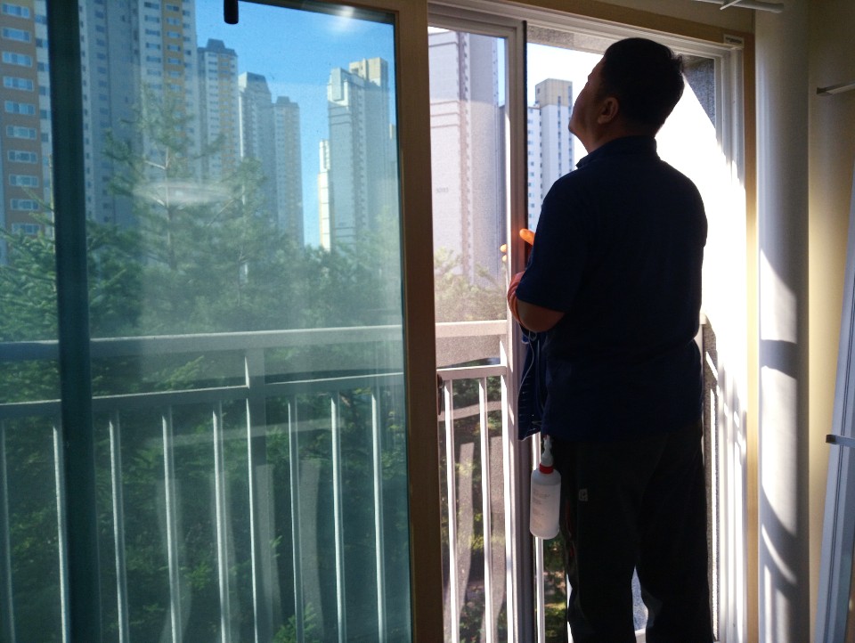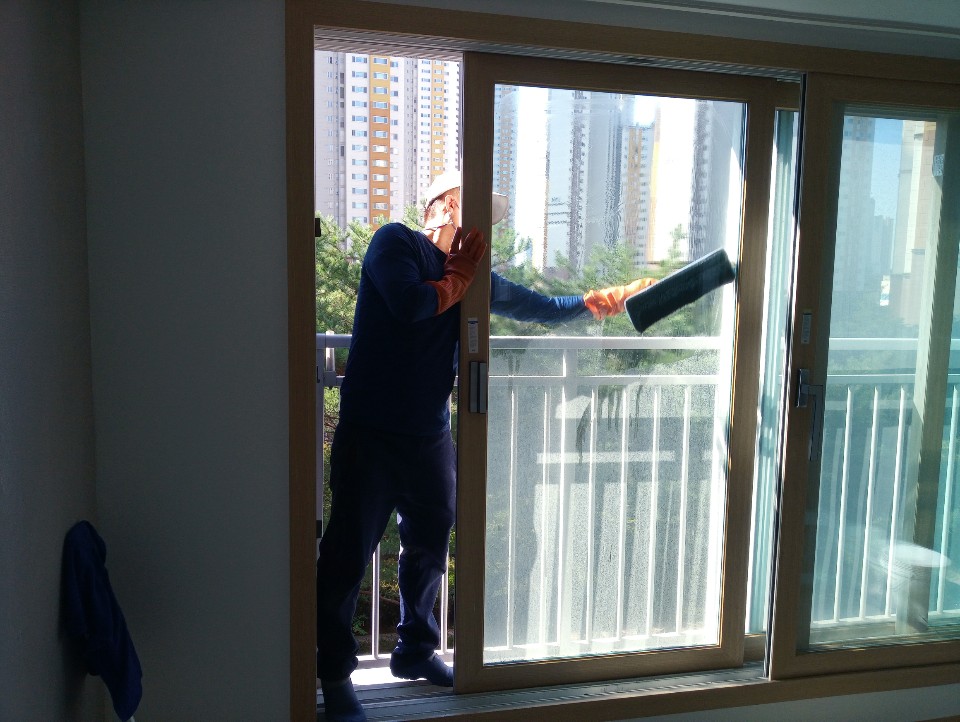 창틀과 문도 깨끗이 청소하고, 보이는 곳 안 보이는 곳 모두 찾아 청소합니다.