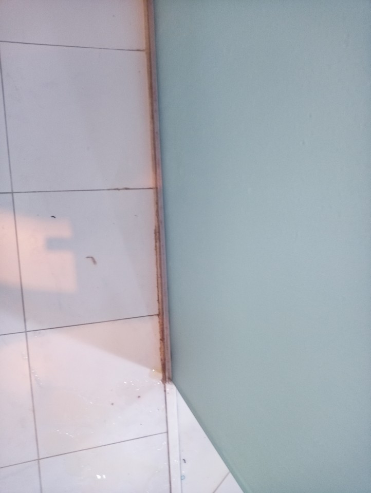 물때와 샤워 부스에 묻어 박혀있는 소변이 묻은