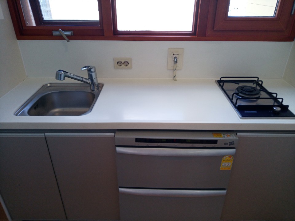 뒷쪽 베란다의 작은 주방,