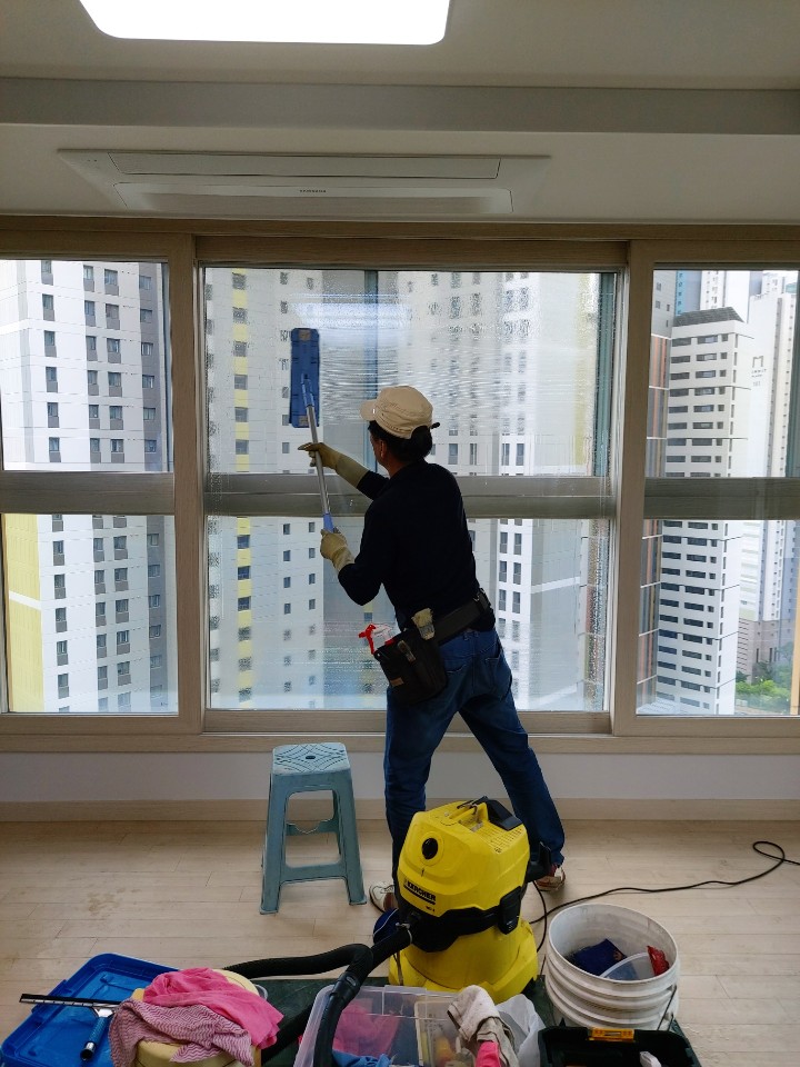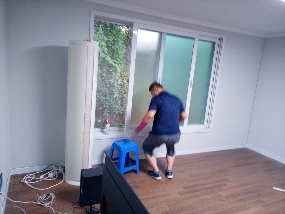 집안 내부의 창문과 창틀 문틀 방충망의 청소가 진행됩니다.