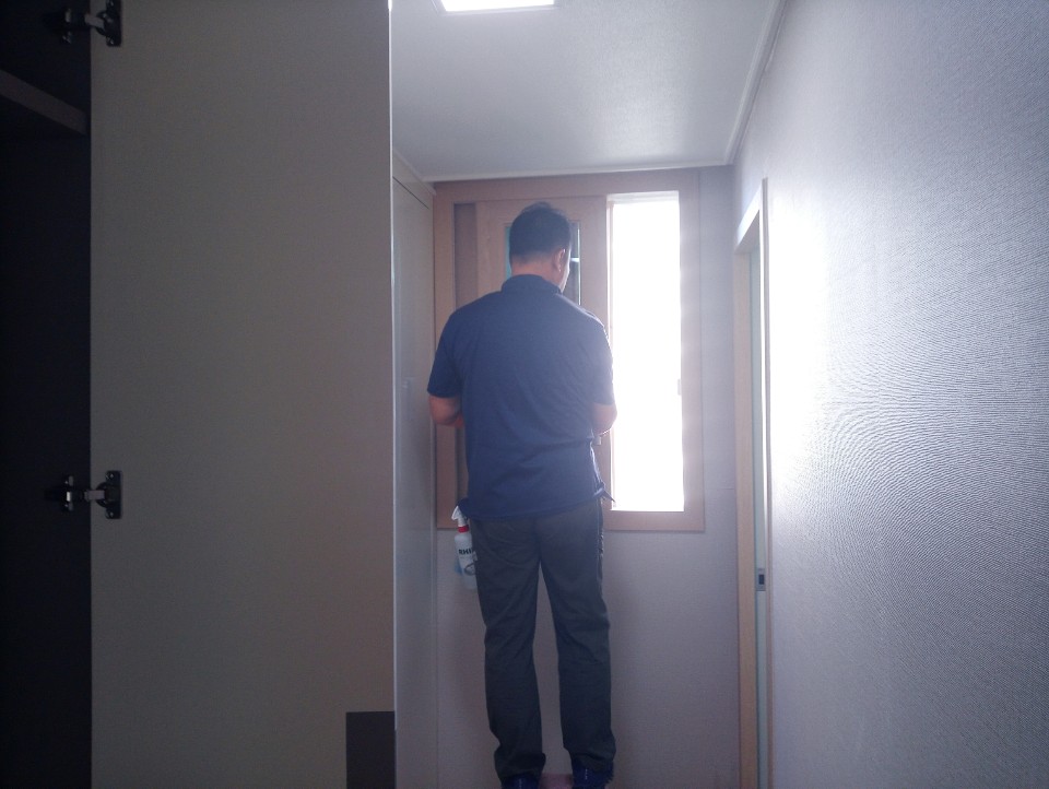 집안 내부의 창문과 창틀 문틀 방충망의 청소가 진행됩니다.