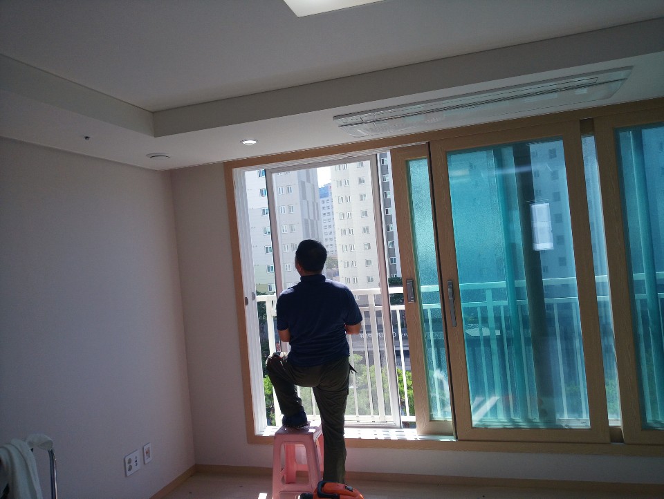 집안 내부의 창문과 창틀 문틀 방충망의 청소가 진행됩니다.