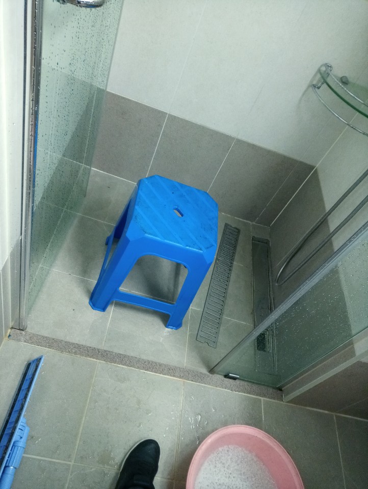 바닥 먼지와 찌든 때를 제거하고 배수구 청소도 하였습니다.