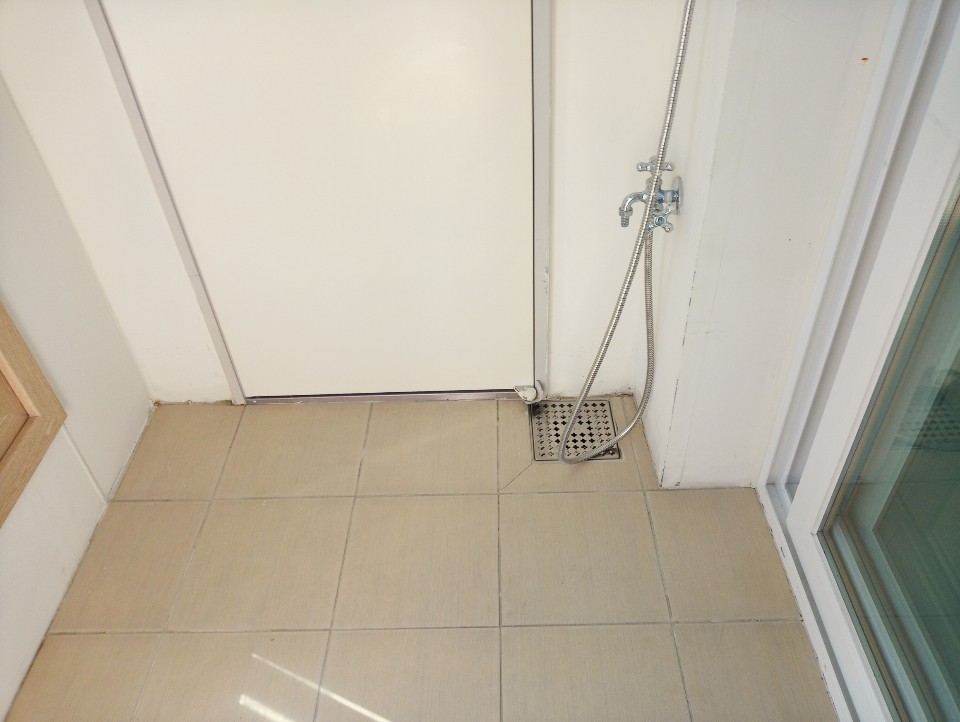 뒷쪽 베란다 역시 바닥에 많은 먼지들이 있습니다.