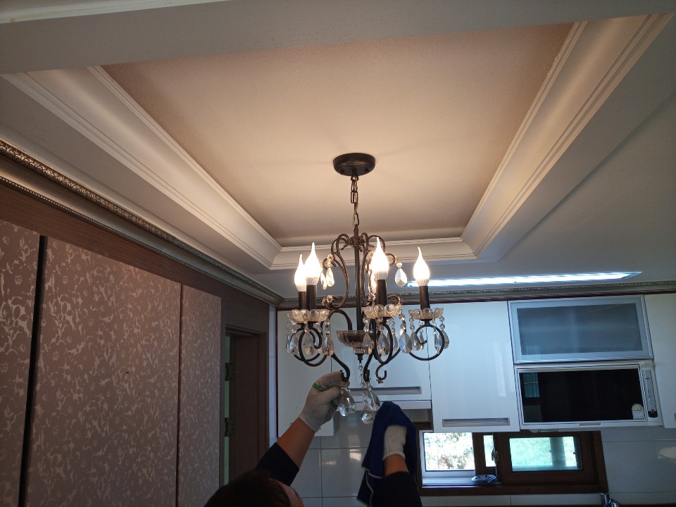 천장형광등기구분리하여 벌레죽은것들과 먼지제거,각방의 문짝 문틀손잡이 내외부청소