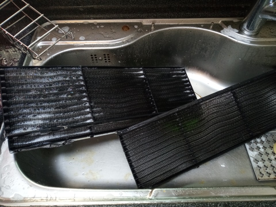 에어컨 필터청소는 전용세제로 먼지와 기름때세척!