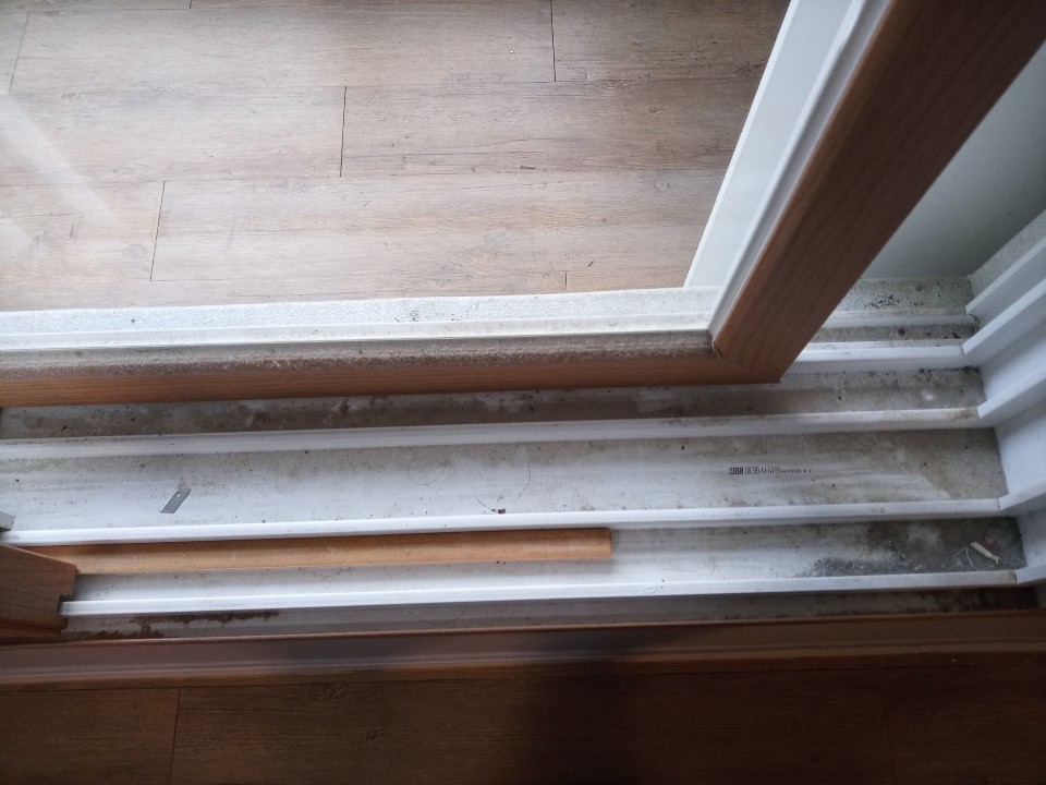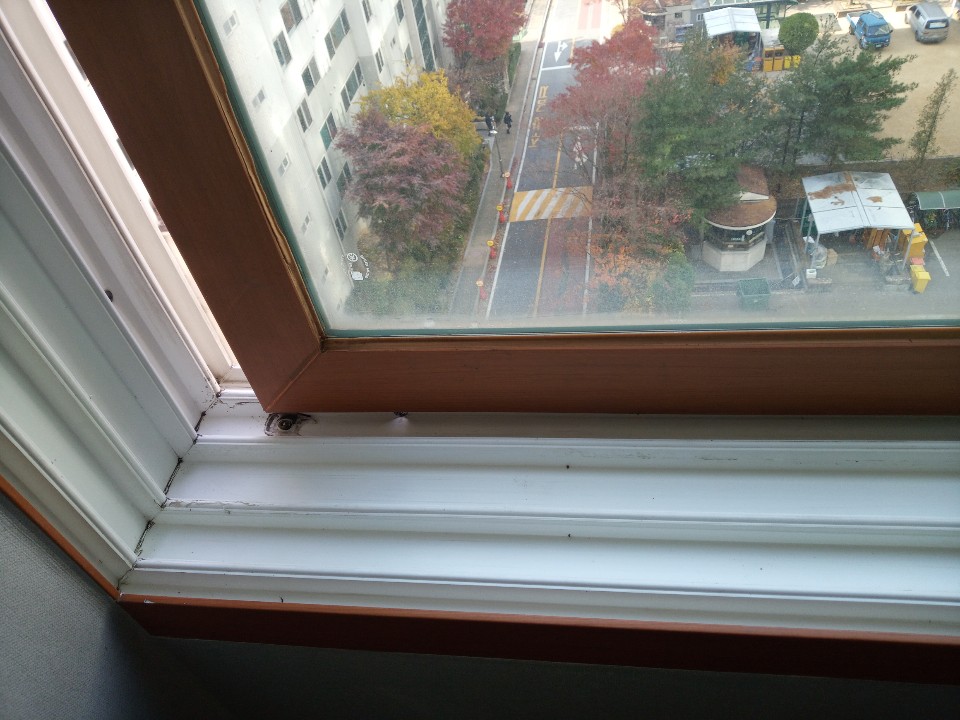 창문을 보면 창틀에 이렇게 까맣게 오염된 것이 보입니다.