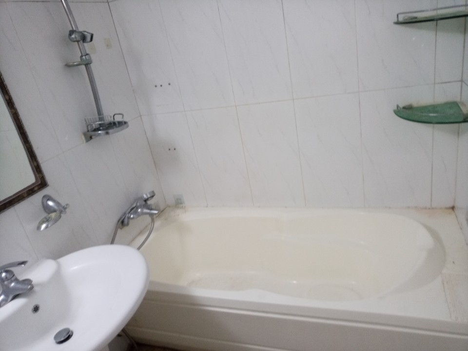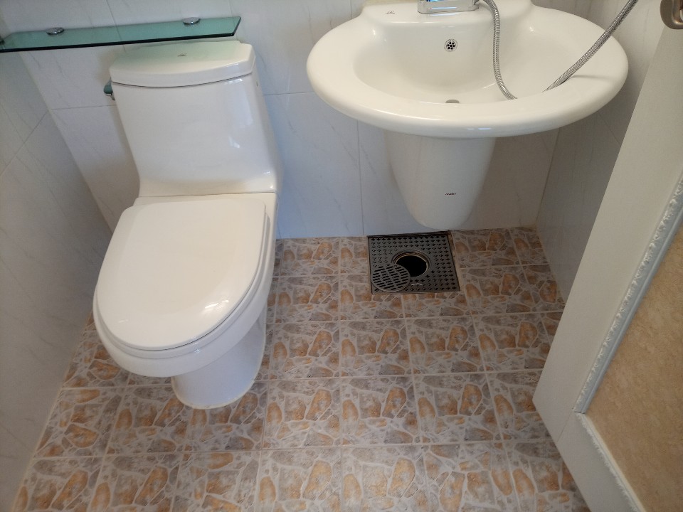 천장부터 바닥까지 변기, 세면대 욕조, 샤워부스,